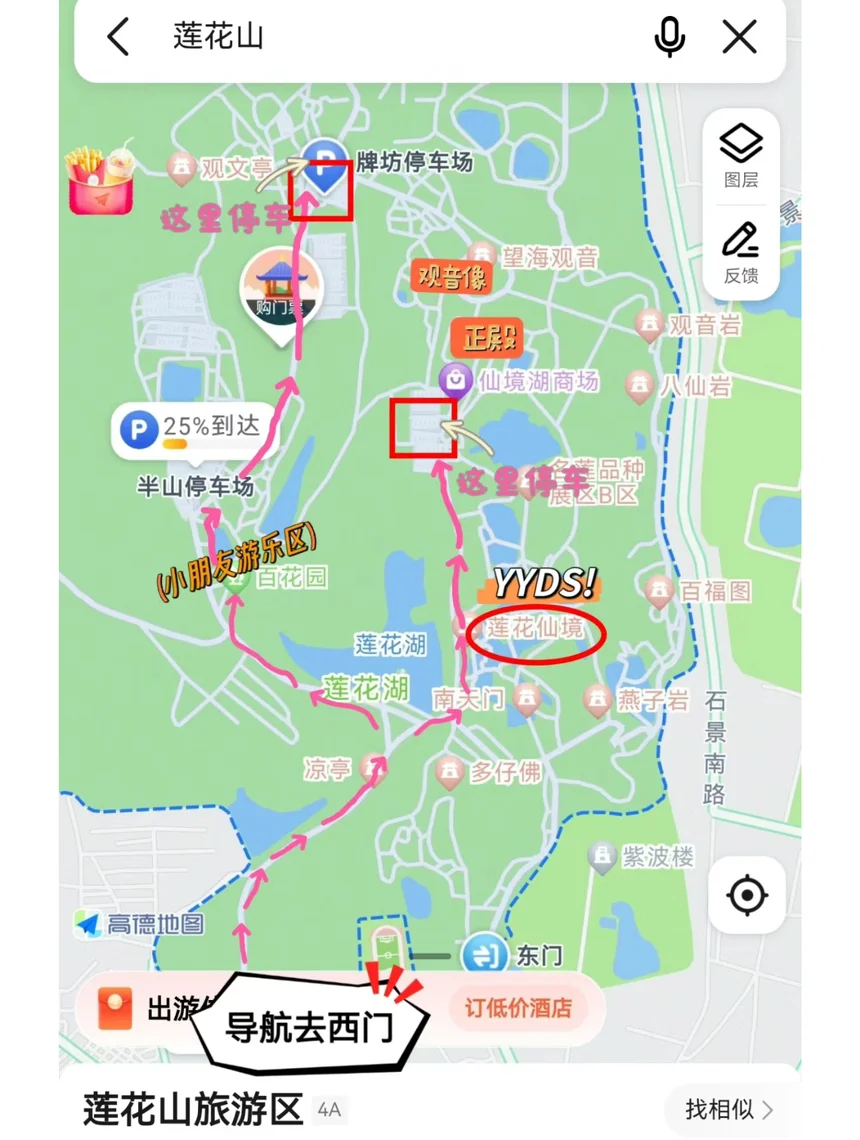 位于利丰大道上,导航可以选择莲花西路或者莲花山西门,这是一座可以自驾上山的景区~自驾超棒。期待智驾得升级,一起领略不一样得美景