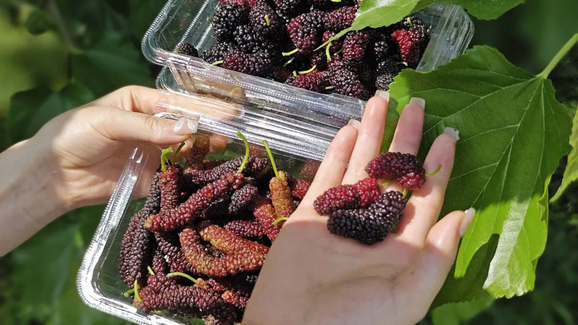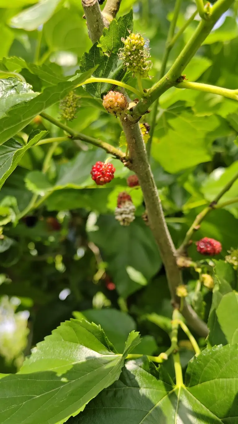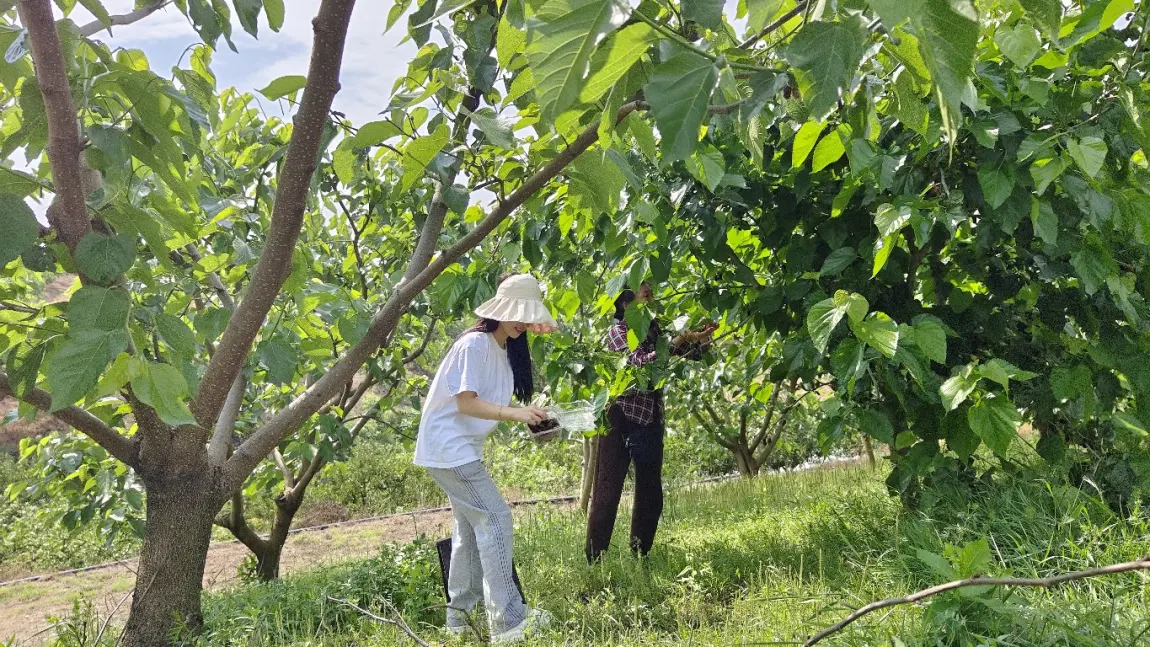 第二天,在荆门的一个采摘园摘桑椹,紫色的桑椹非常甜,老板人很好,一边热情的招待我们,一边帮我们爬到比较高的地方摘成熟的桑椹。