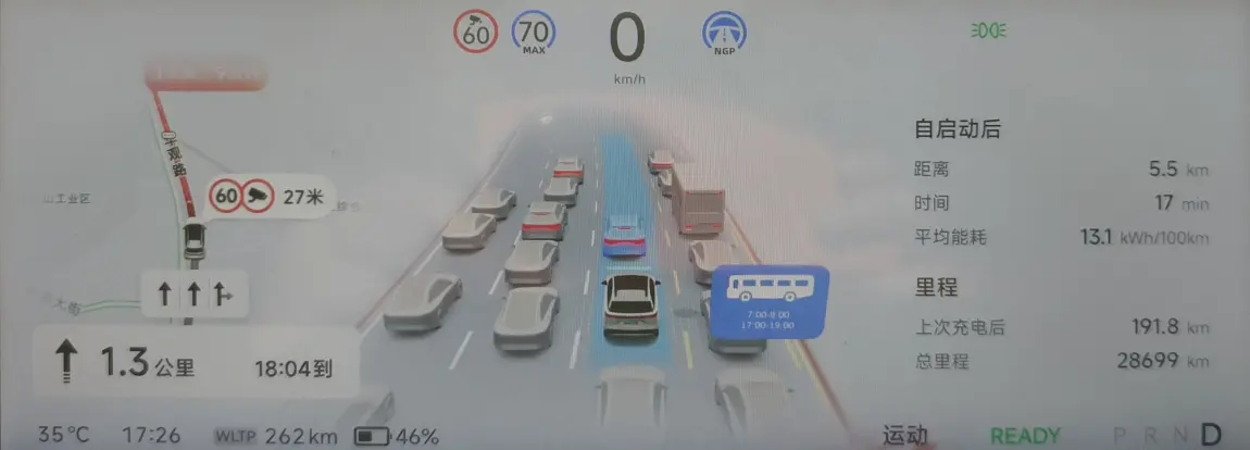 在复杂的工况下,车身的那么多感知系统,他是比人的肉眼实现综合决策能力更强的。要相信系统,自己的视线上的决策为辅。