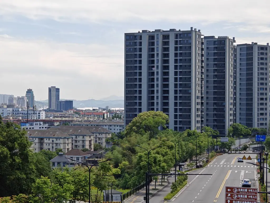 天气晴朗,阳光明媚,天空湛蓝,阳光透过洁白的云朵洒在大地上,给人一种清新舒适的感觉。远处的山峦清晰可见,山脚下绿树成荫,形成了一幅美丽的画卷。