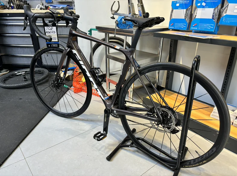 5月11日中午,找了几家捷安特专卖店,最后电话一家大的直营店,还有一台TCR九代库存,可抄底。于是火速杀过去,经过试骑、砍价,最后拿下!那个因为热爱的激动行为,简直是头晕目眩。