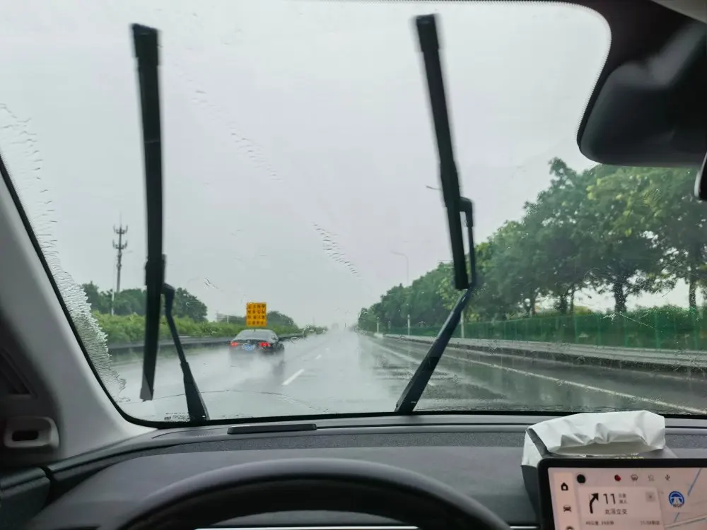 说回NGP这里,我发现当我把雨刷开到最快的档数,也没有油车的雨刷最大档数的猛,不过由于最大档数的问题,NGP就不能开启了,这个我觉得也是挺好,因为基本把雨刷开到最大的档数的天气基本都是龟速行驶在高速路上了,容易发生事故,所以还是自己开比较好;