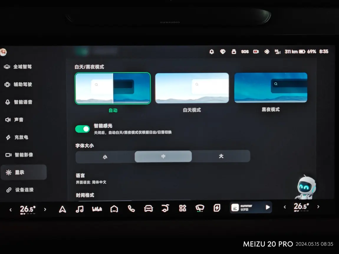 7、屏幕主题 (白天 / 黑夜)支持根据光照强度自动切换,打开智能光感即可。