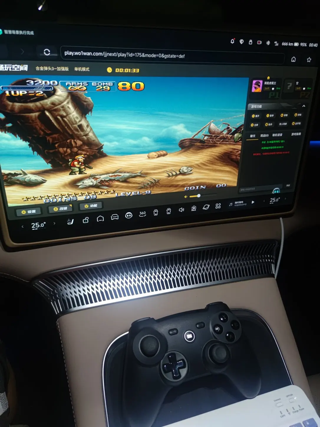 之前一直在主驾前排屏幕测试,今儿也到二排大屏幕测试了一下,没有任何问题,手柄前排链接好之后,后排可以直接控制屏幕。