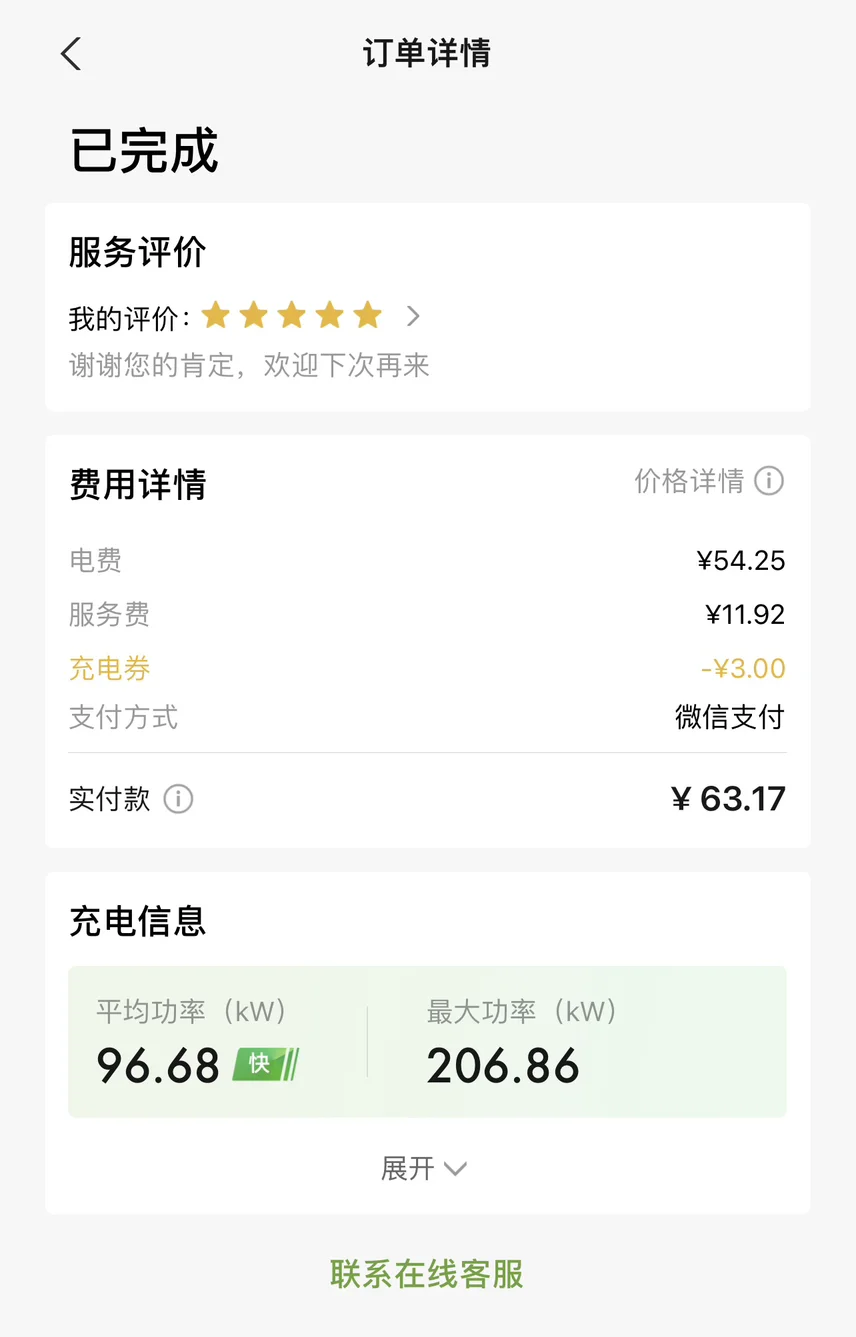 开了两天满电开到剩余90km,找了个小鹏4s超充站体验了一下,充电嘎嘎快,电费嘎嘎香,等家充安上更香😌