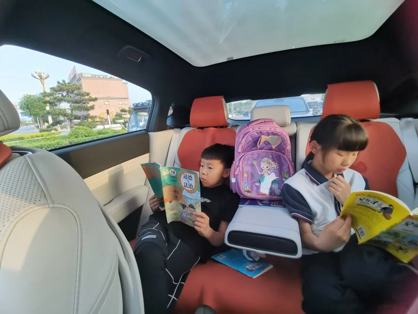 小鹏P6后排空间很大,两个孩子一点不拥挤,而且路过比较窄的地方看的清清楚楚,内心很有安全感,再也不怕刮蹭~
