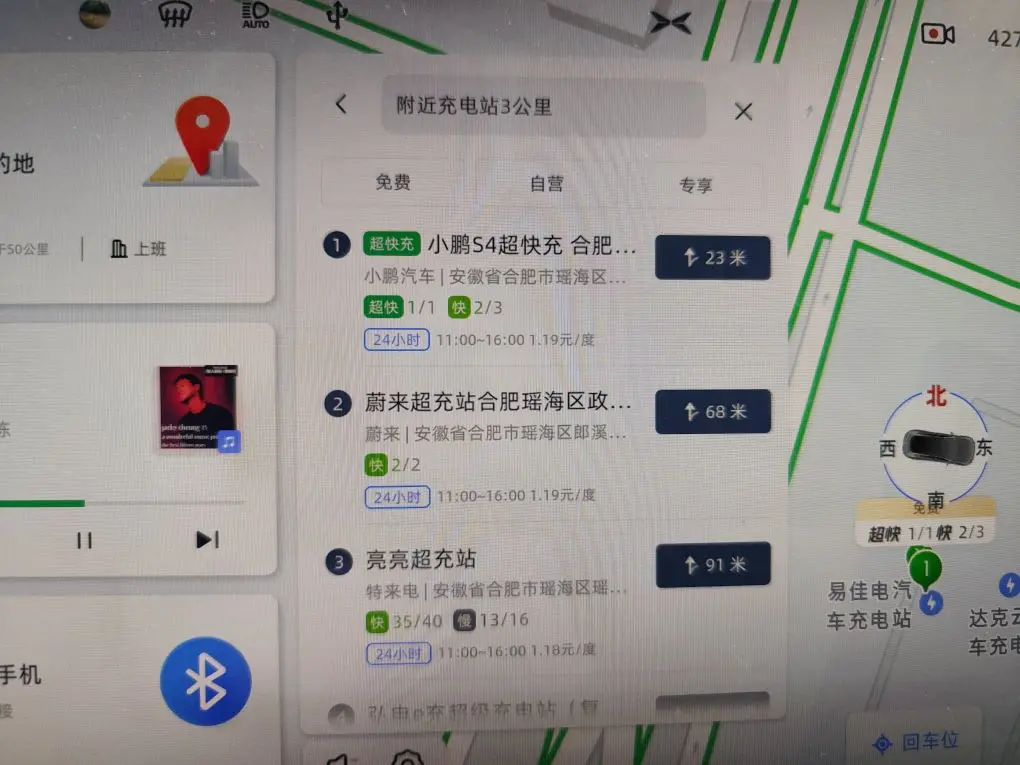 按照导航达到充电站点,选好一个充电桩,打开快充孔即可插枪充电了。