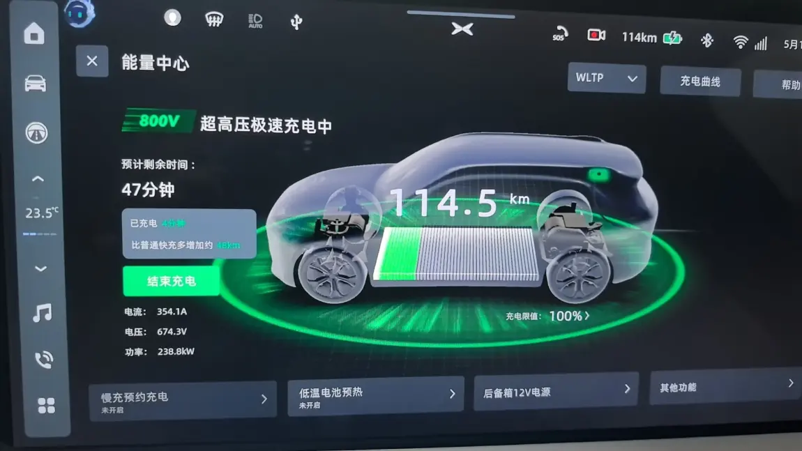 公共充电桩:小鹏G6还支持更高功率的充电,如使用小鹏自家的S4超级充电桩,可以实现更快的充电速度。根据数据,S4充电桩在没有分流的情况下,从5%充电到90%只需要31分钟,峰值充电功率可达287.4KW。