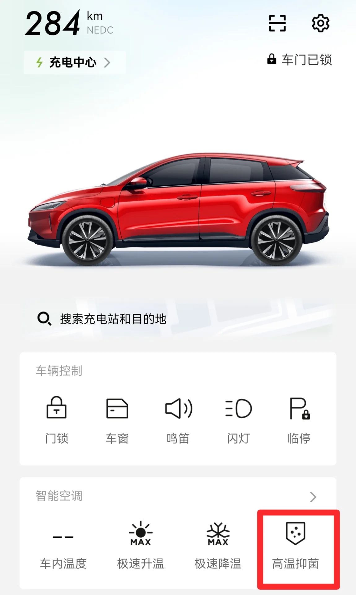 小技巧:如果阴雨天或者地下车库,我们可以使用小鹏app的高温抑菌功能将循环通过的空气加热到60℃左右,来提高车内温度,加速有毒害物质挥发,并且可以降低车内空气中病菌的存活度哦!