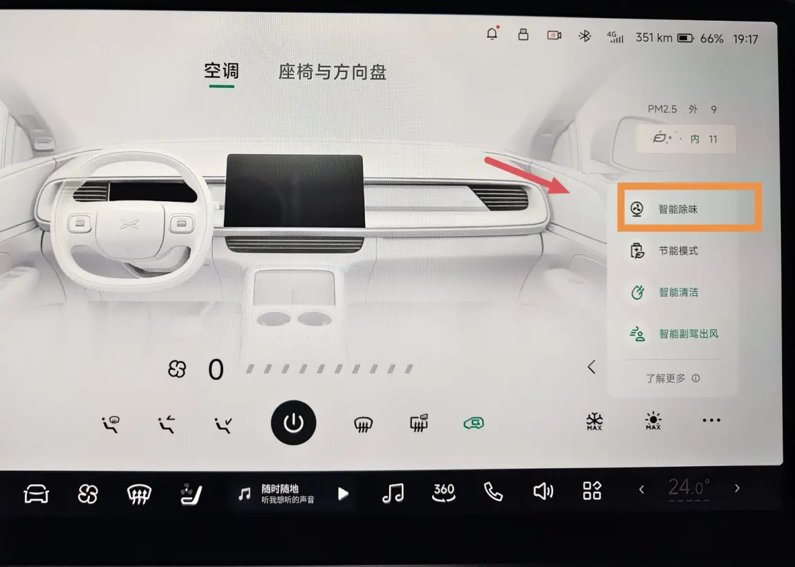 车里有异味,主要来自于以下三个方面:空调、座椅和内饰、车内物品,针对这几个不同的异味来源,需要采取不同的手段。👉🏻空调系统空调系统的异味,多为酸臭味,常出现在雨后,是因为空调系统管路发霉导致。我们可以打开空调中的智能清洁功能,这样,在关闭空调后会自动清洁管路中的水汽,减少空调系统的异味。