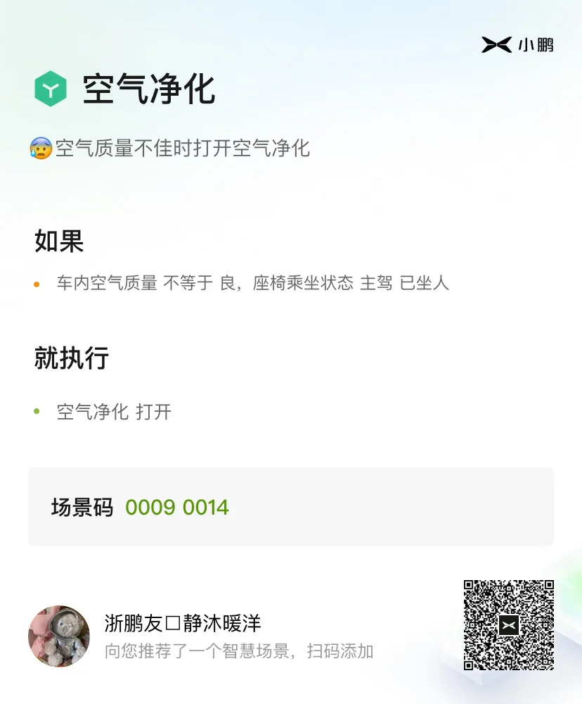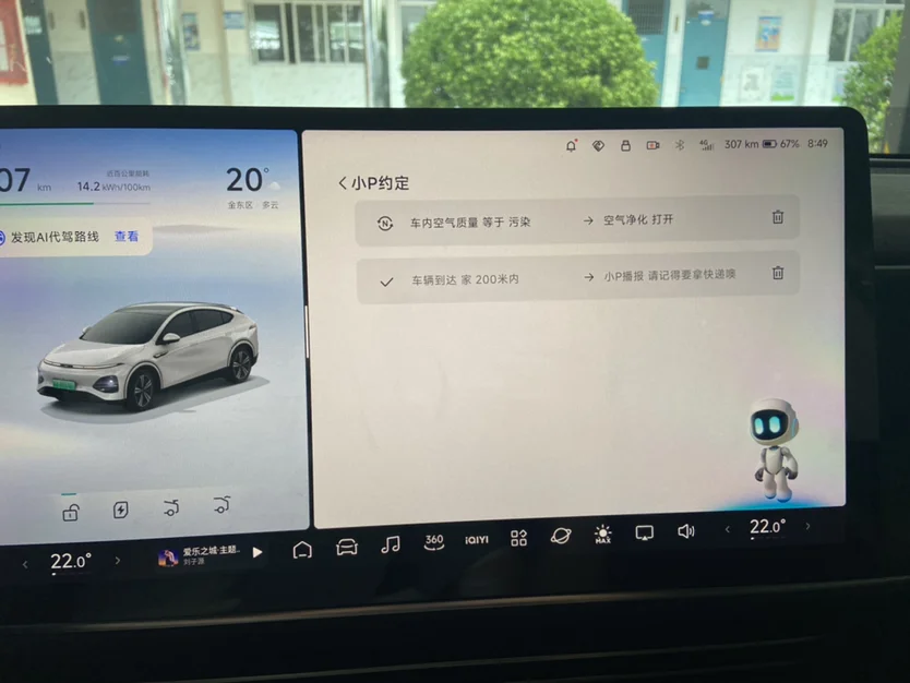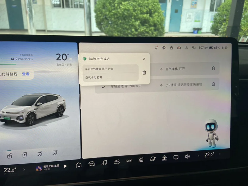 另外还可以使用鹏厂推出的小P约定功能,当车内空气不良时可自动开启空气净化功能。