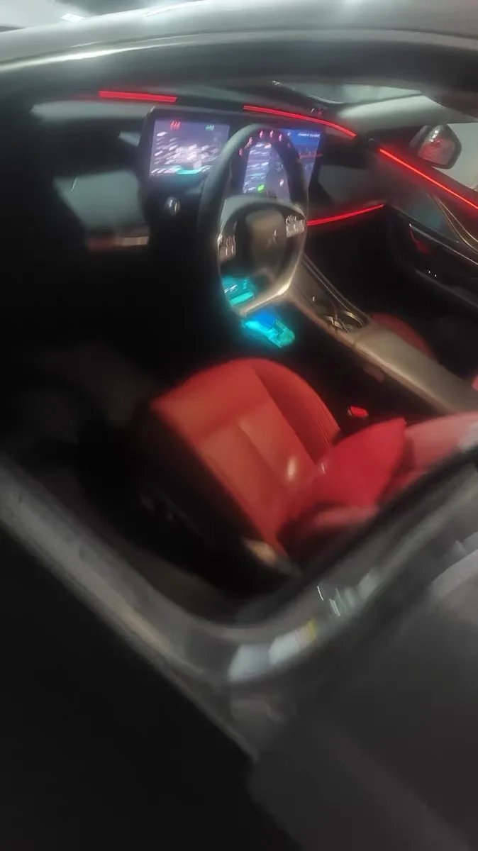 红座椅,红氛围灯,再加个红色头枕和腰靠,很红很时尚