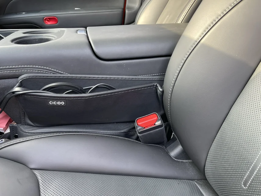 这玩意真的方便,首先他能堵住座椅和中控的夹缝,防止手机和一些小东西掉在夹缝里,其次,我有三个手机,平时放个手机,放个充电线,都比较方便,其三,脏东西只会掉在上面和收纳袋里,清理也特别方便,所以放在第二个推荐,真的墙裂推荐,谁用谁知道。