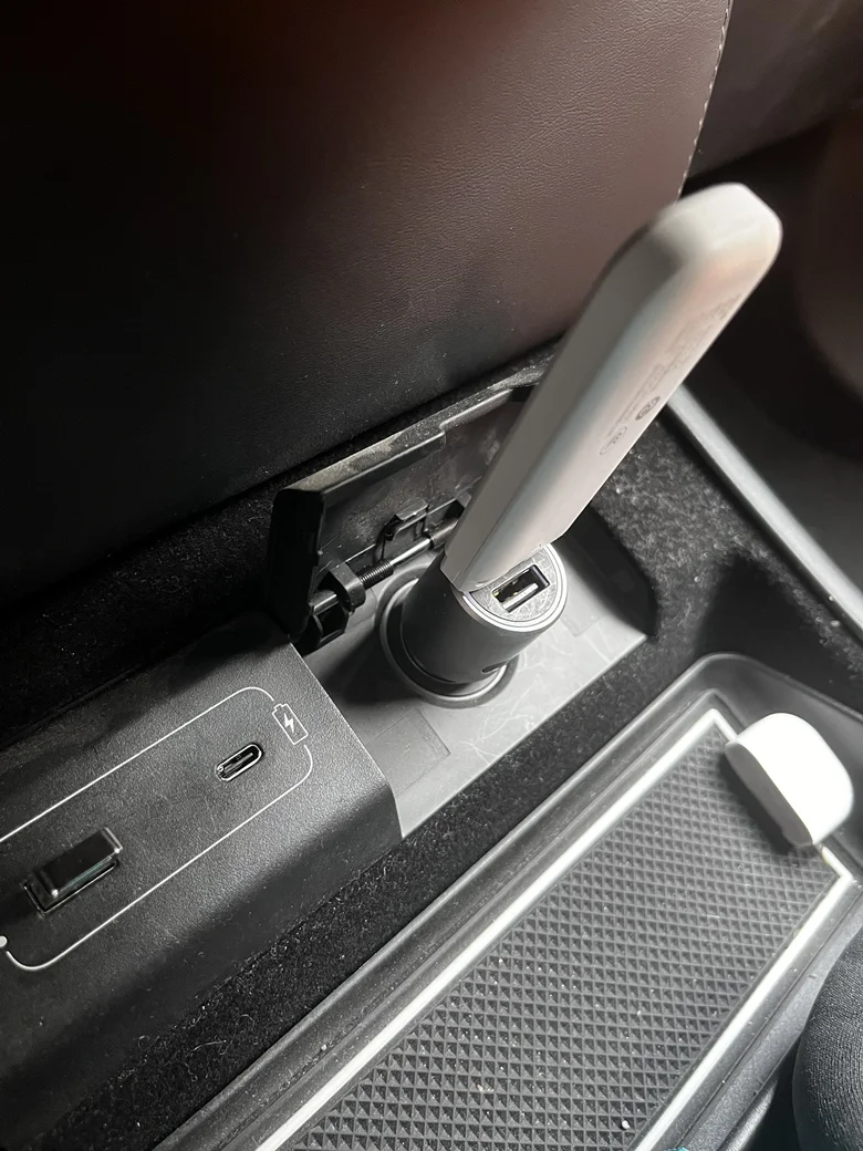 主要前方USB口被行车记录仪的U盘占用了,我通常用它来给移动WIFI供电,同时还可以连接一些车载电子设备,毕竟每个月送的流量不够用。