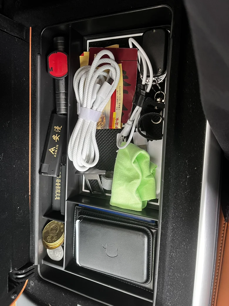 这个分层盒将原来中控下方分成了几个小格子,可以存放手机、钱包、钥匙等物品,原来的太空,东西一多就杂乱。