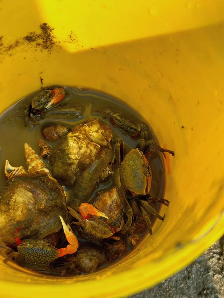 昨天海边抓螃蟹🦀,回来路上副驾桶🪣翻了,几只螃蟹🦀爬进洞里🕳️,怎么办😭,今天一车海鲜味