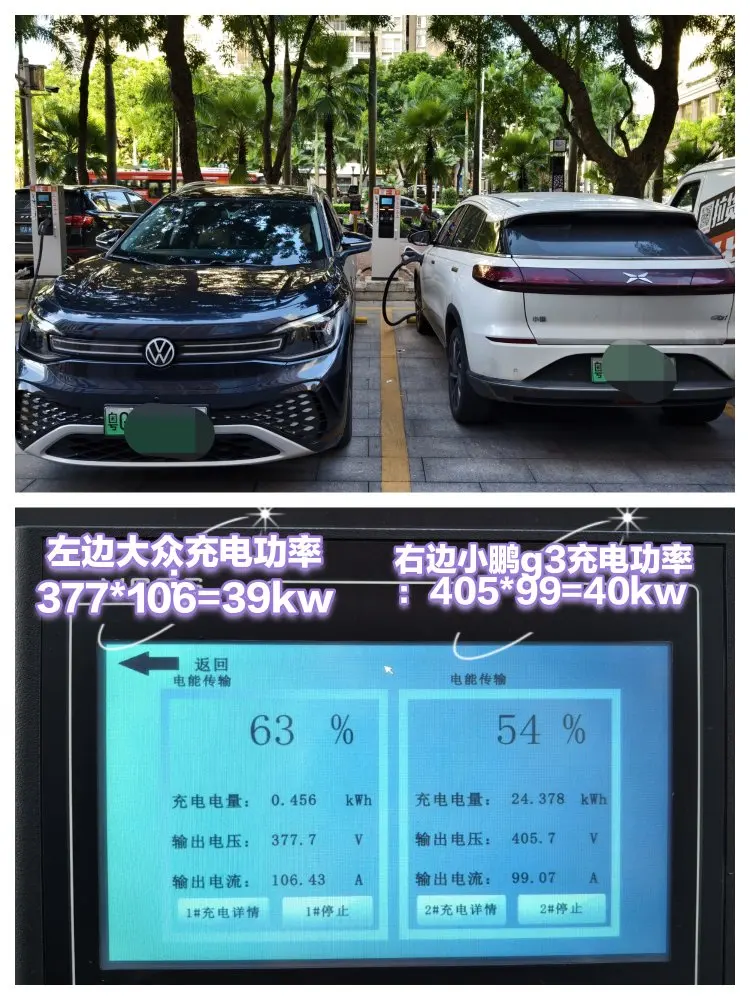 小鹏g6快充,秒杀大众??在号称480kw的星星充电桩上测试充电速度。0.5元/度的电,必须撸满。😏小鹏G6充电功率一直维持在150kw,知道90%后下降到80kw,秒杀旁边的大众(39kw)和老G3(40kw)。800v平台真不是吹的。😘🌹