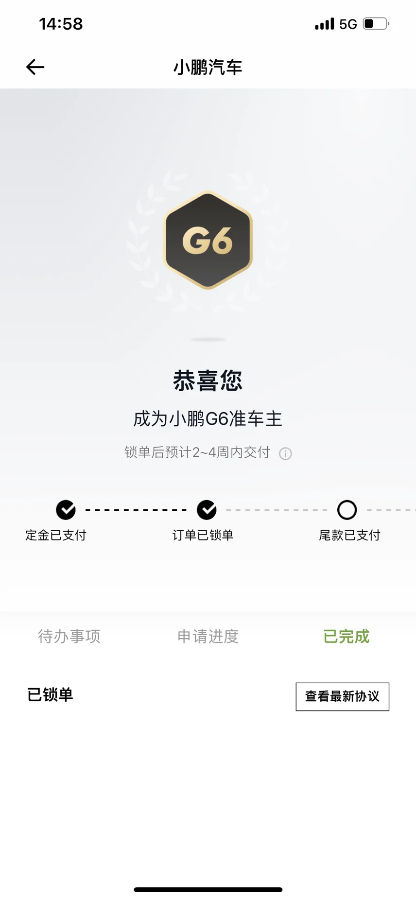 时间转眼到24年4月份,G6新出的黑武士版本,又开始点燃心中买车的念想!看到很喜欢!等到6.18活动感觉力度挺大的,合适,所以我就冲了!