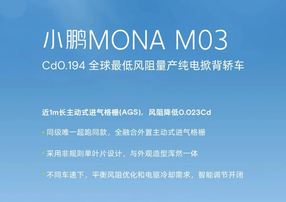 小鹏 MONA M03 令人惊艳 风阻系数