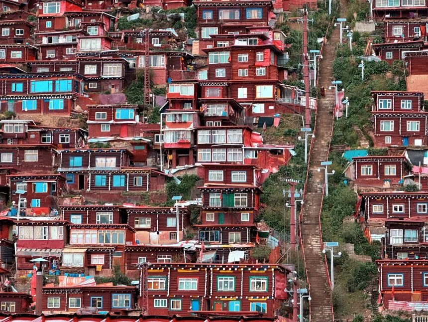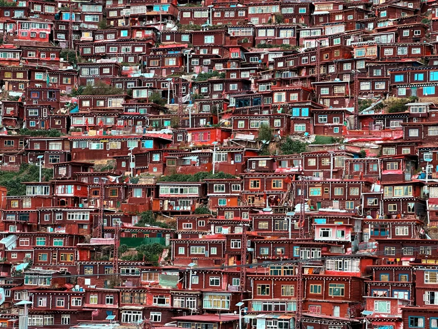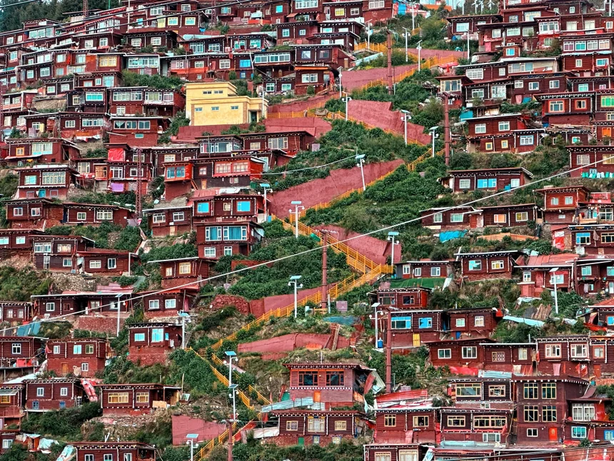 (色达喇荣五明佛学院修行觉姆的红房子)