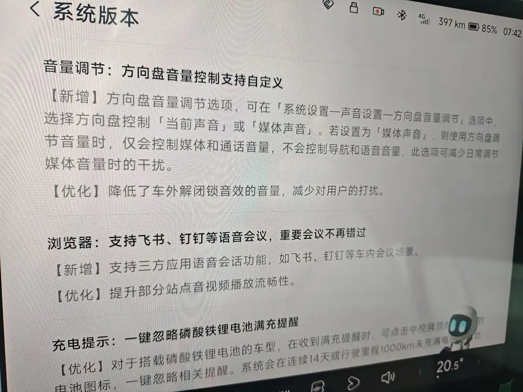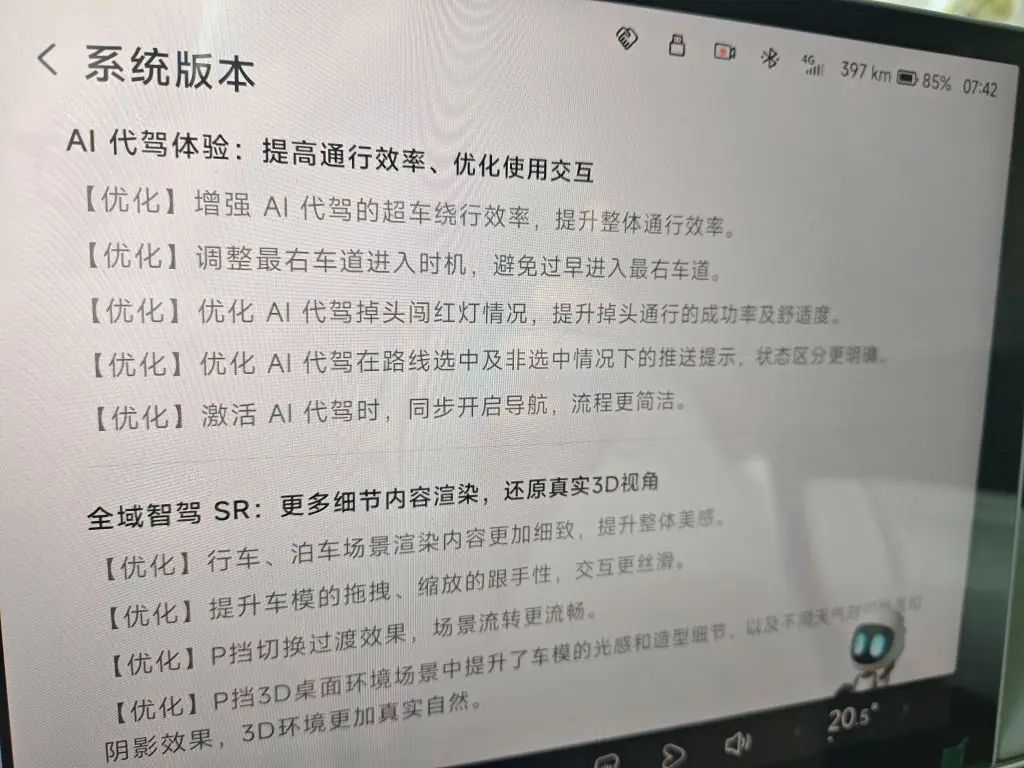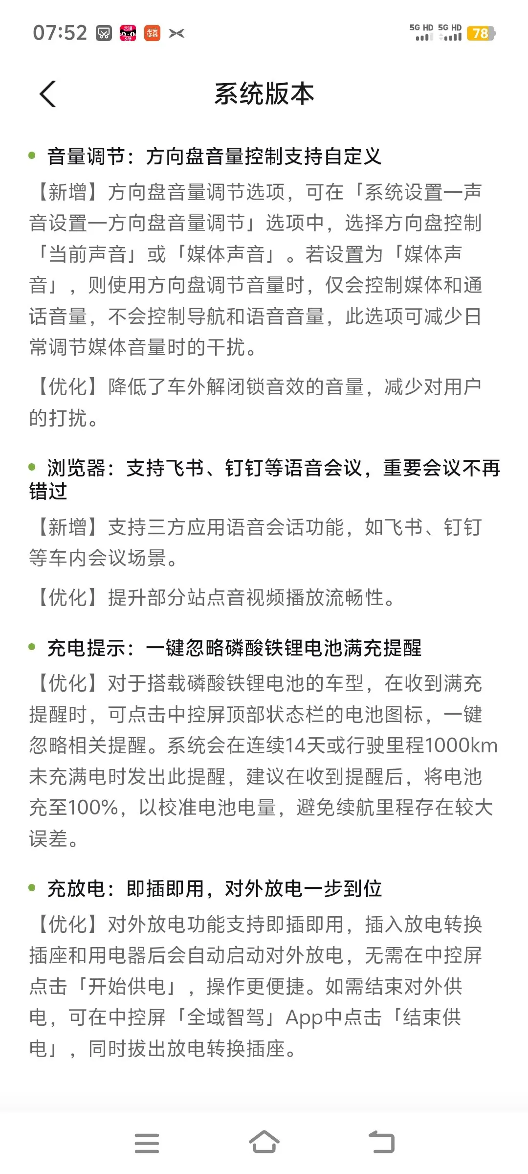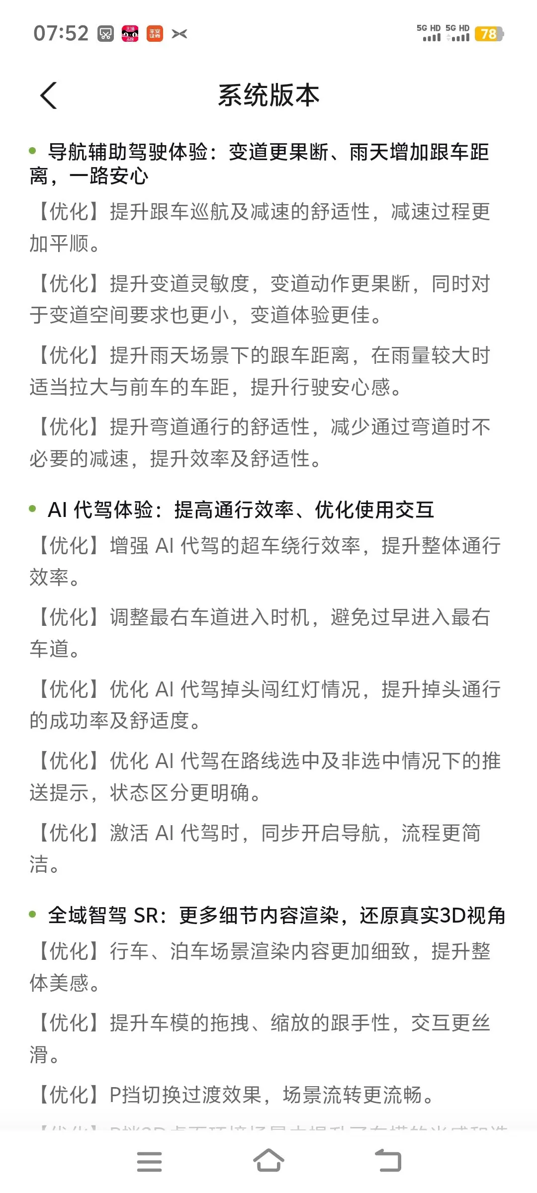 看完英格兰跌跌撞撞的比赛,手机app提示我系统早已经提示升级完成了。今早开车上班,车屏幕也弹窗提示天玑系统已经更新到5.1.5版本,具体升级的内容车屏幕和手机上都有详细的说明,涉及AI离车泊入、AI代驾、XNGP智能辅助驾驶、音量调节、浏览器……各个方面,升级的地方还是不少的。尤其浏览器,支持钉钉打卡了,这样就方便出门稍晚的车主在车上就可以完成考勤打卡了,真是很有帮助的升级点。