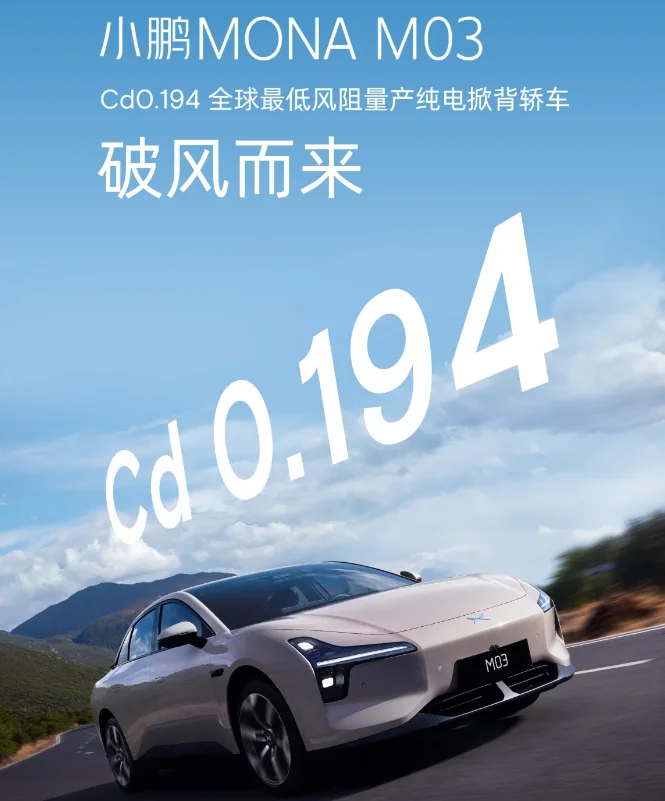 小鹏MONA M03最低风阻比小米SU7还强