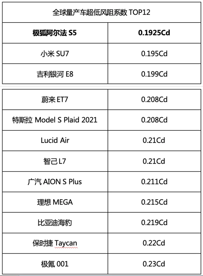 不过值得注意的是,小鹏MONA M03的风阻系数是“全球量产纯电掀背轿车”中最低的,如果去除这个定语的话,目前风阻系数最低的车型应该是极狐阿尔法S5,风阻系数为0.1925Cd。