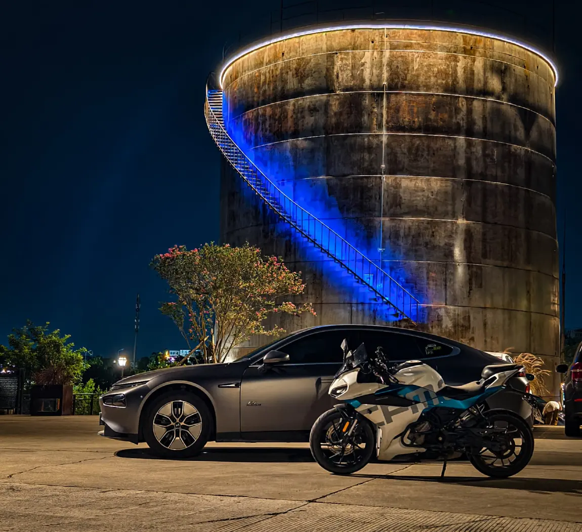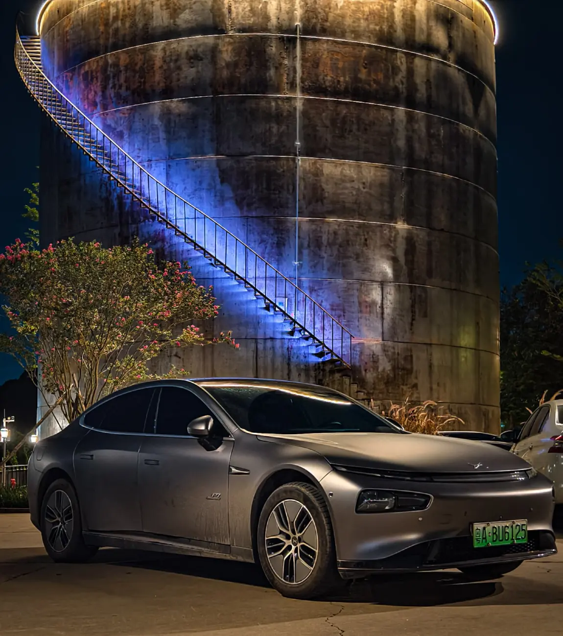 (一般晚上十点后停车场就没什么车,这时你就可以放心大胆的开着你的爱车摆造型,然后与大油罐合照!)@小鹏友 @鹏友大管家