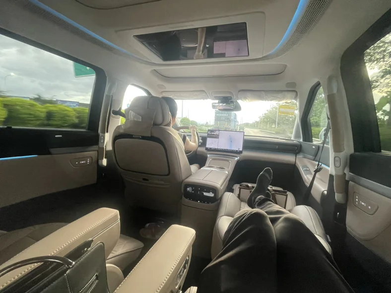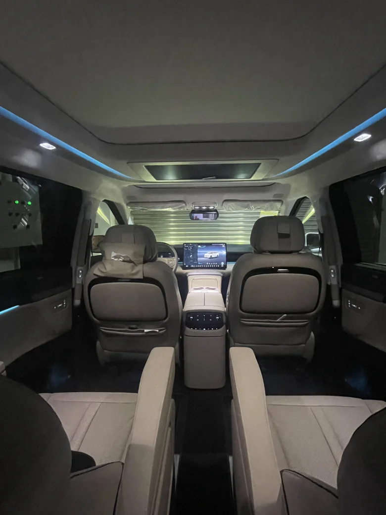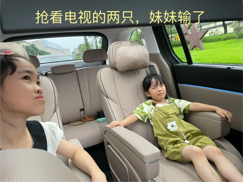 内饰与空间方面做工挺足的,摸到的都是真皮包裹,椅子坐上去软软的很是舒服,由于航空座椅没带过道(价值1.6个W),为了进出方便,就没有选装了,虽然航空座椅是真舒服还有零重力模式可以一键躺平,除了这些,一般原配的座椅,主驾和二排通风按摩加热腰托腿托通通都有(对的,就是副驾没有按摩,为什么…[捂脸]),而且三排空间更足,比市面上大多数同级车的三排空间都舒服太多了,三排靠背还能调动调节角度,头枕也能电调高低,让后排乘客拥有更舒服的坐姿甚至躺平都行,确实少见,三排还能做到电动一键大平层模式,按一下按键,三排座椅就能完整地翻到后尾箱里面隐藏起来,形成一个完全的平面,我愿称之为货拉拉模式[偷笑],真是太大太方便了。安全性也拉满,全铝底盘+一体化压铸车身,能抵御88km/小时的追尾碰撞,坚固程度能让三排的乘客收获满满的安全感。