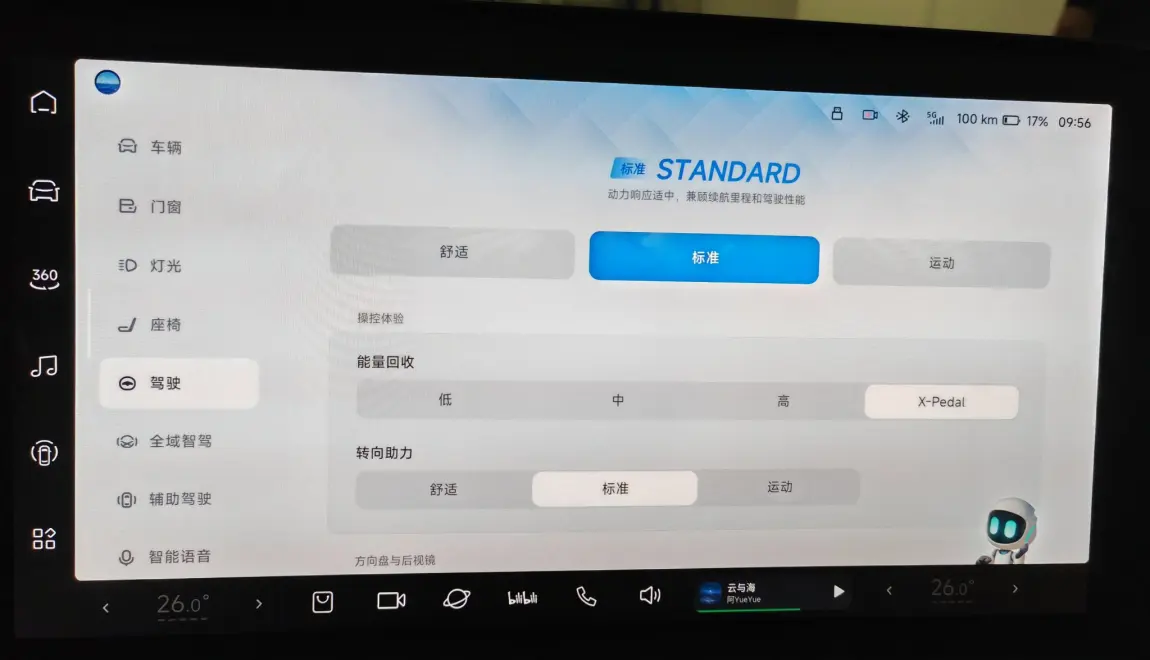 2.减少刹车次数。刹车过程其实就是一个靠摩擦制动消耗惯性动能的过程,因此减少踩刹车次数,才能避免能量浪费。小P提供了舒适模式、标准模式和运动模式,搭配能量回收低、中、高和单踏板,我本人使用的是标准+单踏板模式,掌握好单踏板减速规律后,日常使用过程中能大幅减少使用刹车,小P的单踏板减速也不是太明显,一般是能比较快适应的。