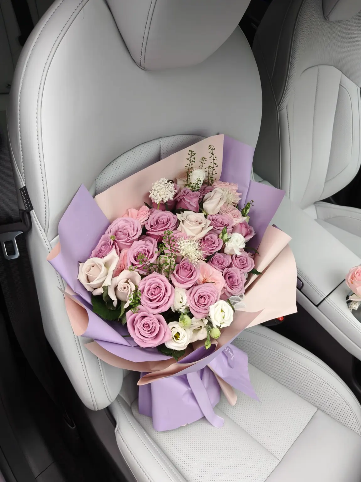 拍照布置自己在网上买了🎈与💐进行布置,拍完就把车开走回家。