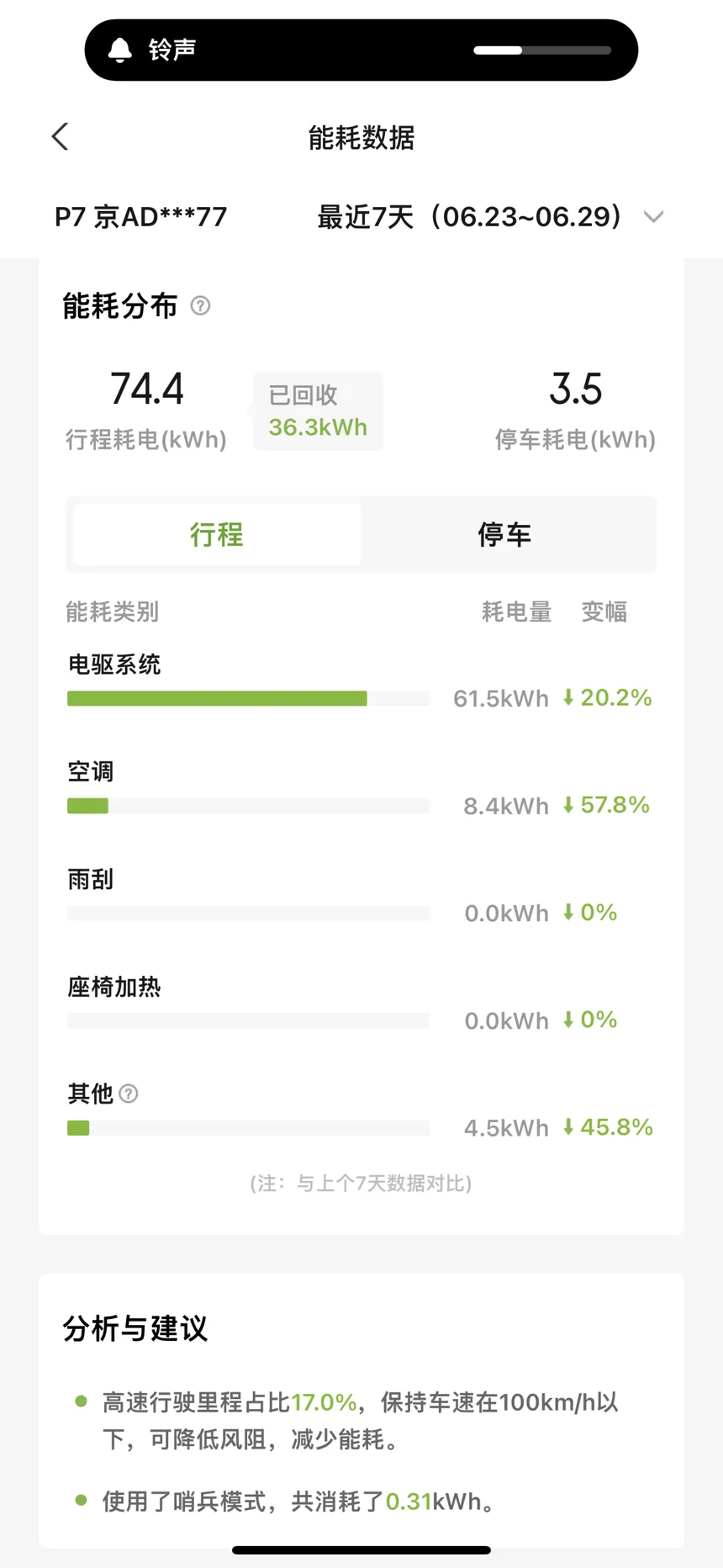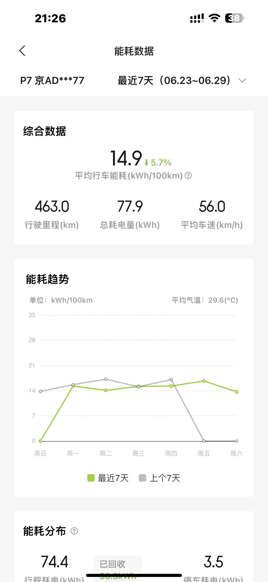 本次日常代步里程和能耗,p7的平均能耗表现如下: