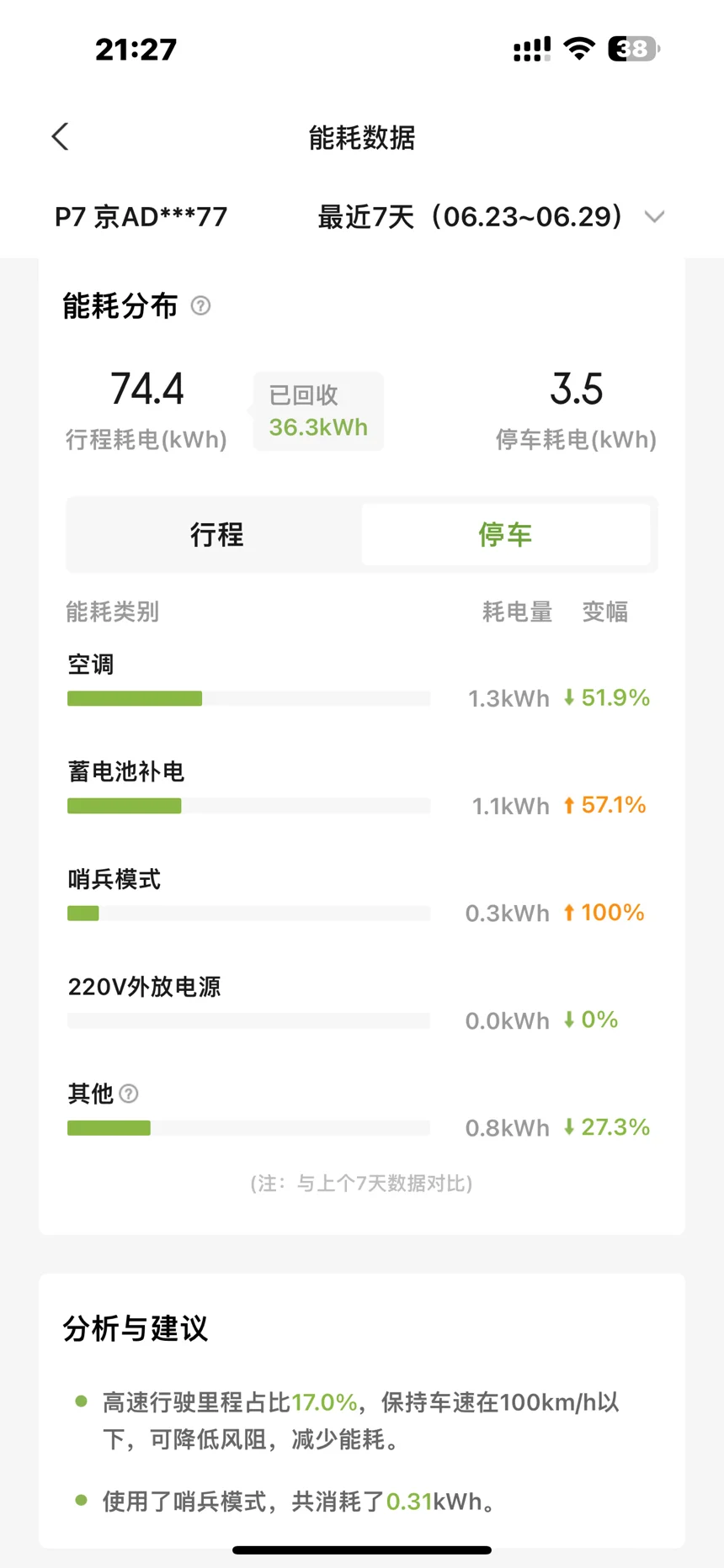 2022款p7能耗报告