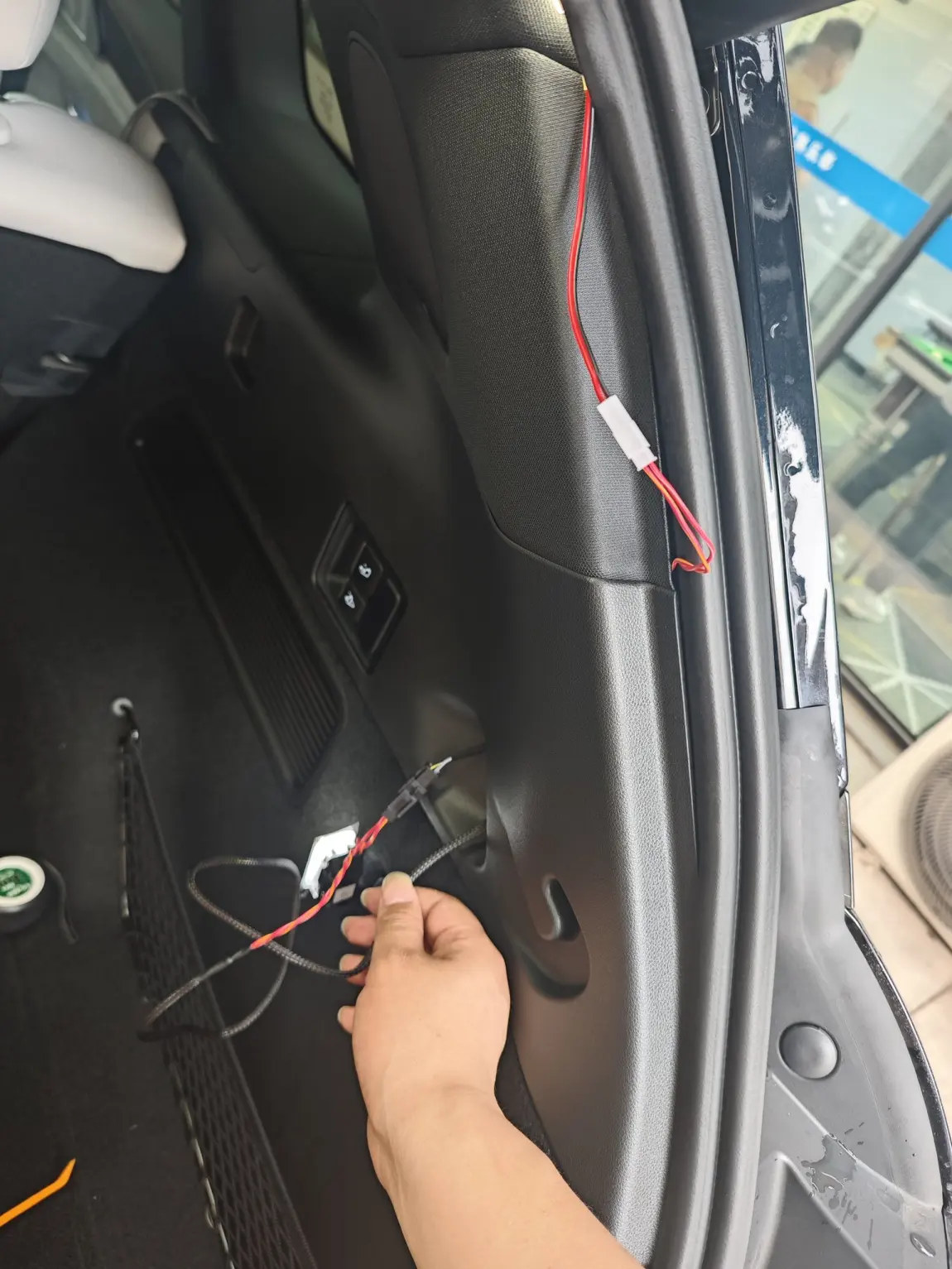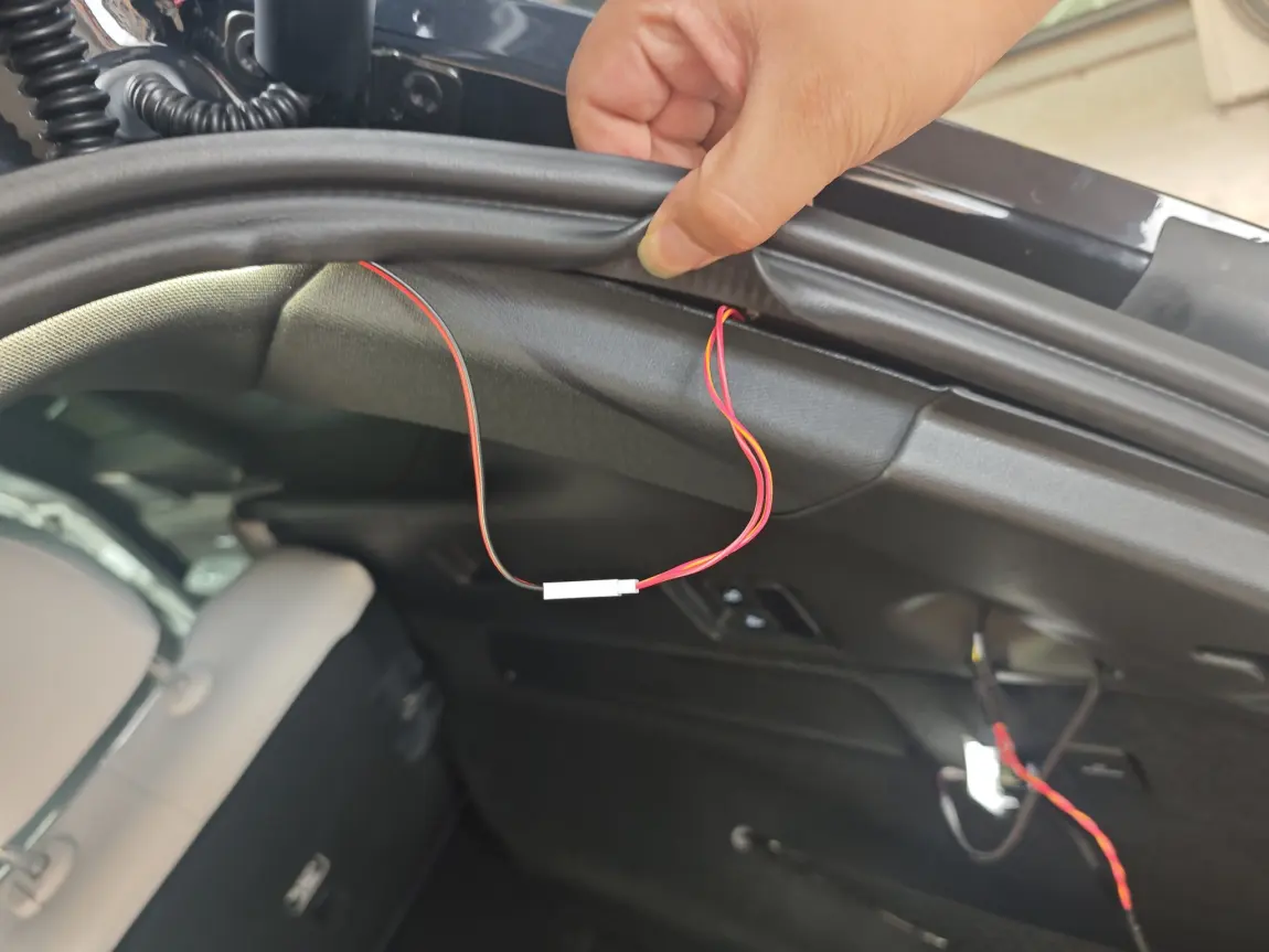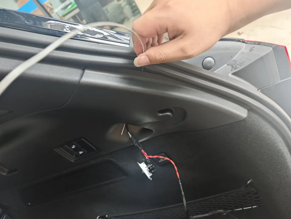 4.注意线束需要包裹与止震,防止线束过长之后,在后备箱由于晃动造成的异响
