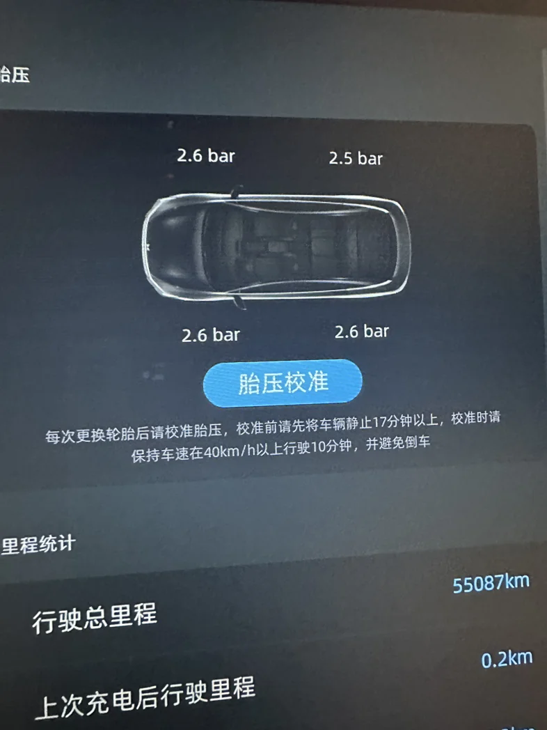 胎压对于能耗也是有一定的影响,通常2.3这个数值就可以了,不过因为我比较喜欢动力更强一点,所以我的胎压都是2.5-2.6这个数值!
