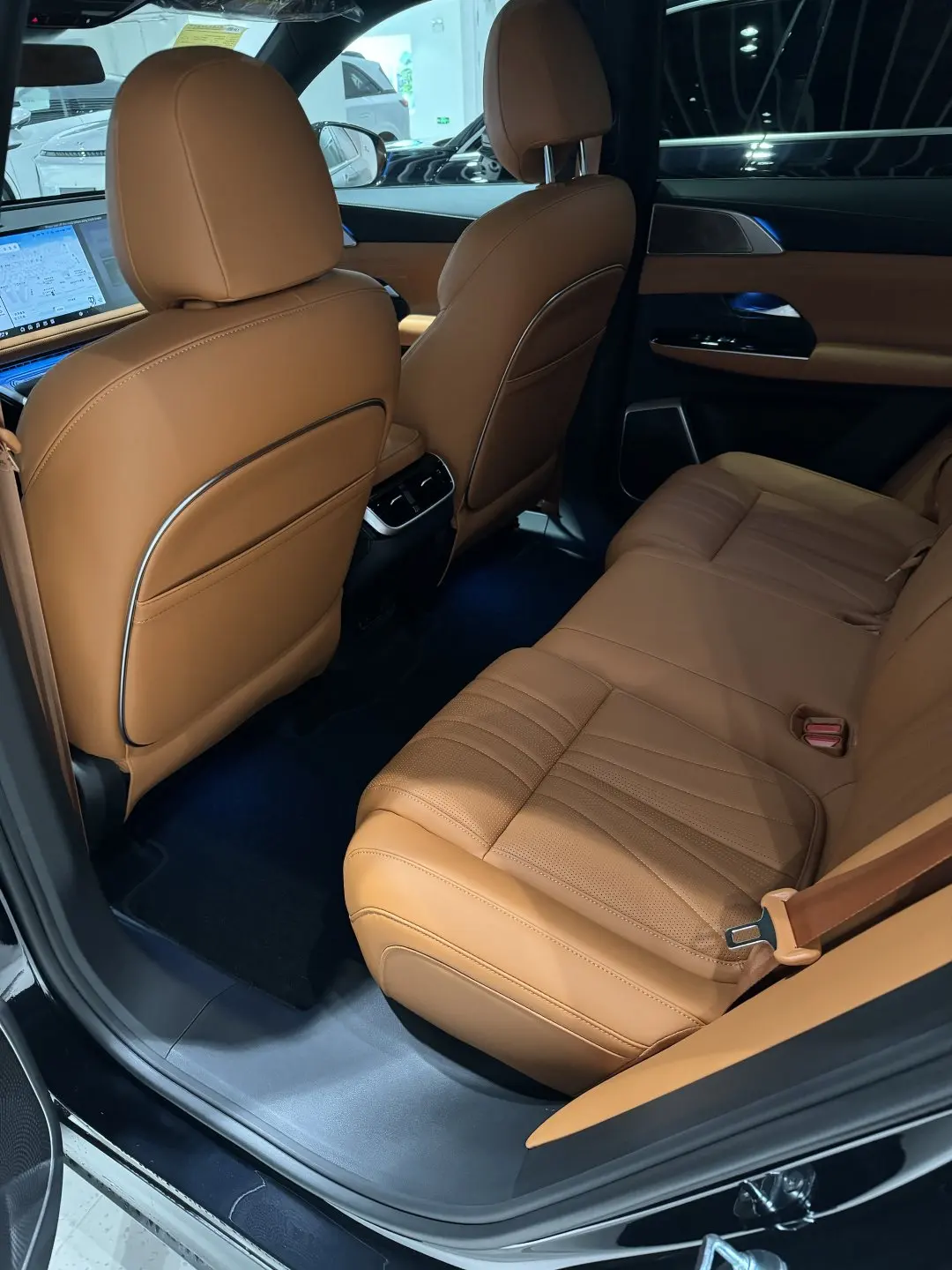 内饰也是挺豪华的,提到车就是上手摸摸感受下纳帕真皮。座椅也挺舒服,有通风,有按摩尤其夏天开长途不要太舒服。内饰材质也都是不错的材质,手能触摸到的地方几乎没有塑料感,触感细腻,做工也好。车内空间宽敞,前排调到最好的位置后排也非常宽敞,腿部和头部空间都很充足,满足五口之家的一家家人出行。