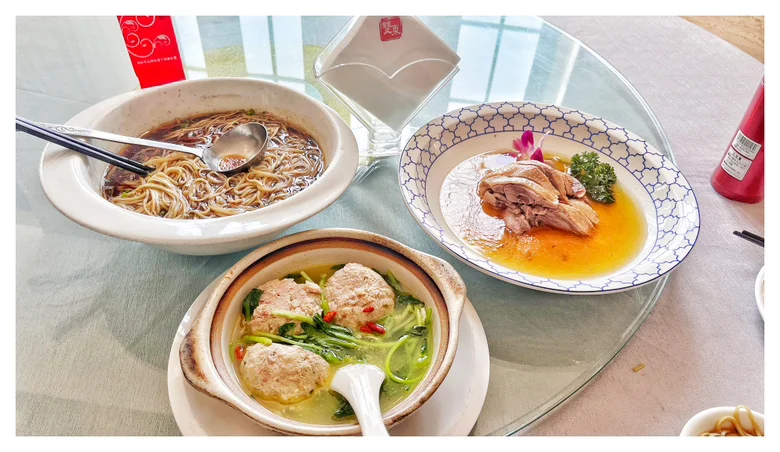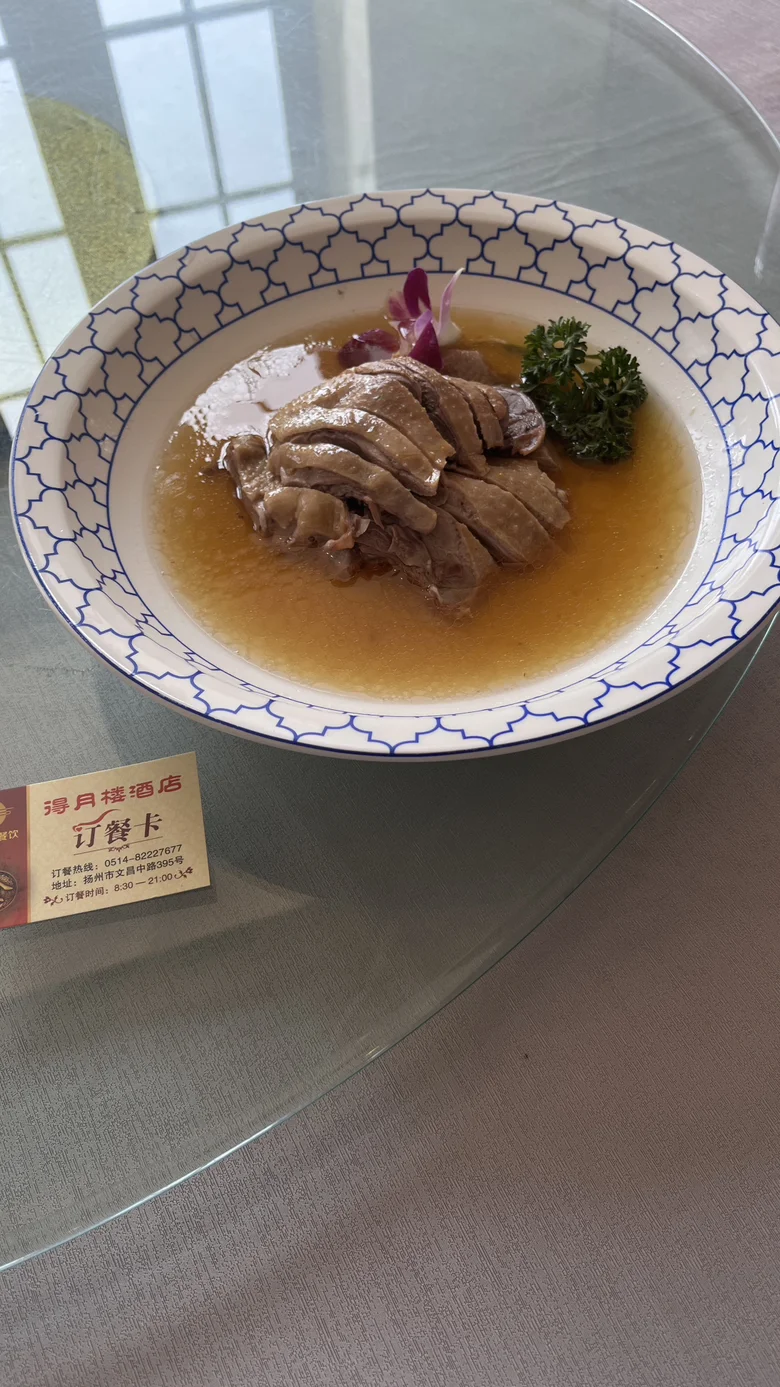 我们本打算要到网红店扬州狮子楼吃早茶,但去晚了没位又没停车的地方,结果歪打正着我们走进了一家扬州本地人才知道的酒楼_扬州老茂双东得月楼,有幸品尝了他家的扬州盐水鹅、清蒸狮子头、阳春面。
