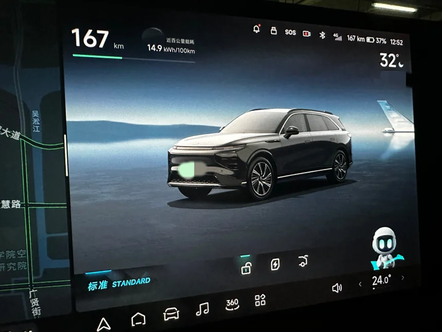 白天停地下车库的还好,要是停室外就很热了。其实小鹏G9的双隔热天幕效果还是不错的,比普通的天幕隔热率更好一点,自己可以考虑贴一个隔热好的膜,要是觉得还热就可以购买商城里的遮阳帘和前挡遮阳伞,温度会降低很多,空调的能耗就会少些。上班时间我都停地库,温度不高,所以遮阳帘还没有安装。