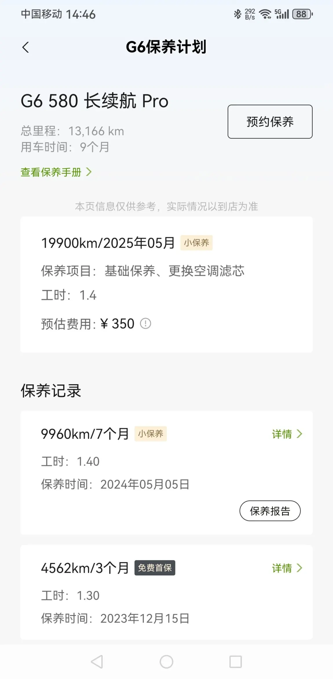 按时保养可以保证车辆良好状态及电池质保。app主页点击公里数可以查看保养情况及接下来的保养所需,非常方便鹏友们安排时间。另:空气滤芯可以自行购买,会节省不少费用。