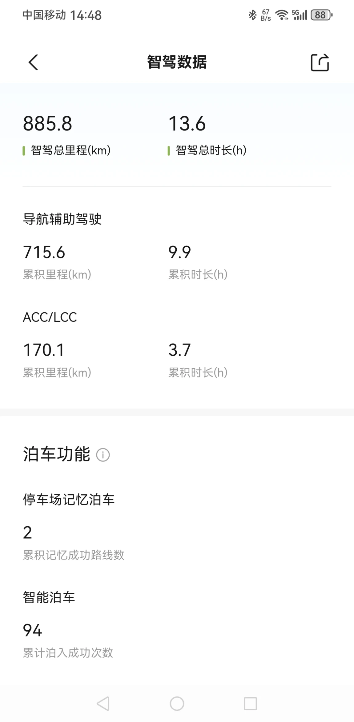 对于智能当面,我个人比较钟意的是自动泊车功能,遇到狭窄车位还会自动收起后视镜,细节好评。但是提醒大家不规则车位及有异物的还是要留心,随时保持预刹车状态,不怕一万就怕万一,没必要惹的麻烦还是省了吧。最近出了离车泊入及泊出的功能,试了下还是非常炫酷的,也可以随时停止介入,但我还是习惯坐车里泊车,感觉更有安全感,哈哈哈。