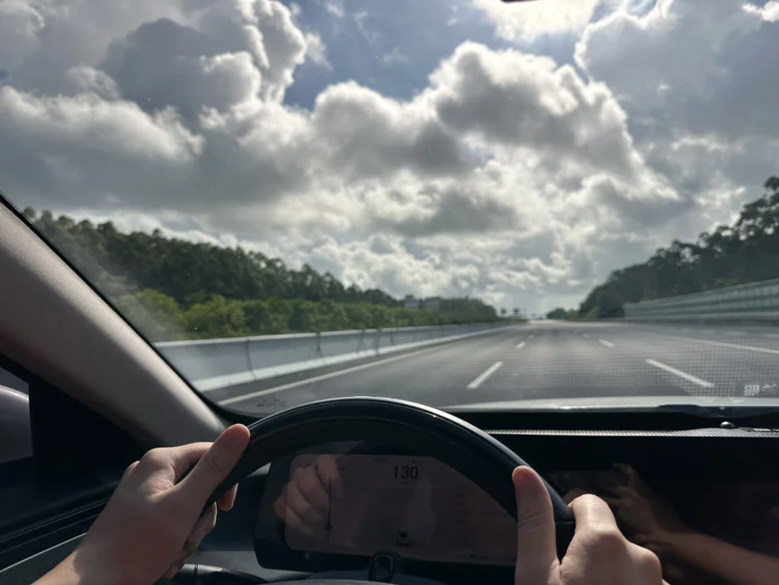 就在前段时间,正好有一次机会,从茂名走沈海高速,大约381公里,沈海高速上没什么车,限制是120,所以在沈海上开到130码,重点是满载5人而且后备箱也装了行李。挑战中途不充电,全程时间3个多小时。