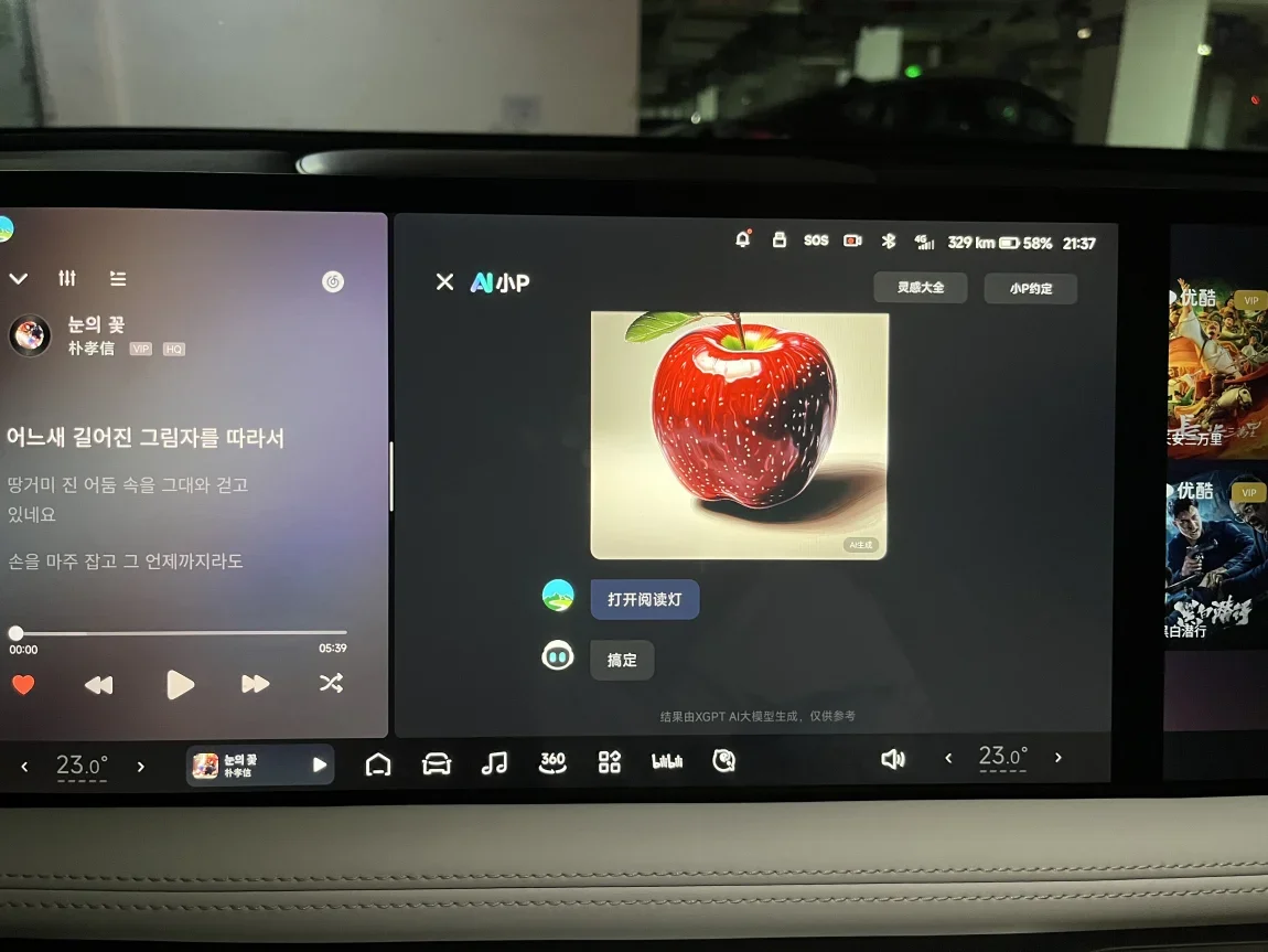 AI小P新增大模型内容的自动生成功能,你将心中所想的画面告诉小P时,它能够为你自动生成一幅画、一篇文章等。这一点太出人预料,小鹏友们乐此不疲。