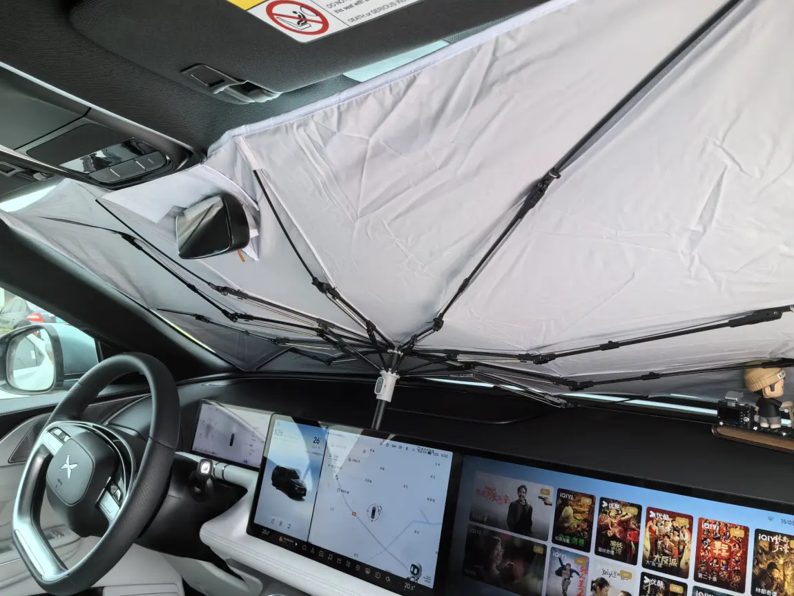 夏天车内温度40-50度,天气预报气温40度,外界太阳直射下温度要有60度,买个前挡遮阳伞,能过有效使得车内温度降低,减少车内摆件老化,很有实用性。