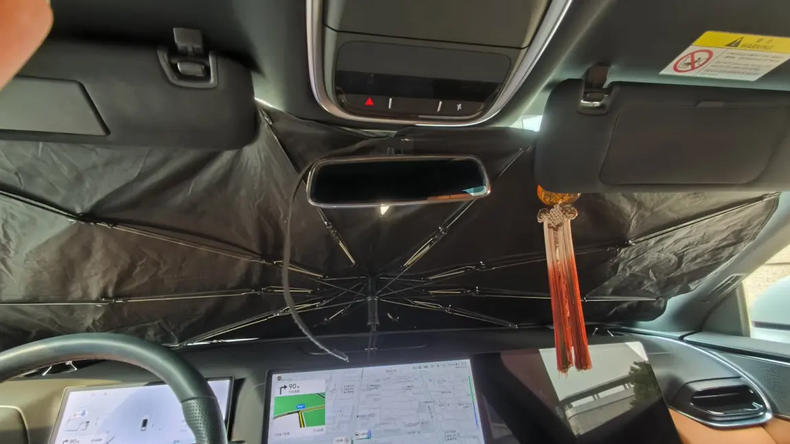 #夏季用车的秘密# 1.小鹏原厂遮阳棚必备,不然头顶要被晒冒烟了;2.前挡玻璃遮阳伞,拉环设计不会磕碰屏幕,一键开合,像收纳折叠伞一样方便,;3.上车前远程打开极速降温模式,这样不管天气多热,进到车里时都是凉爽的。