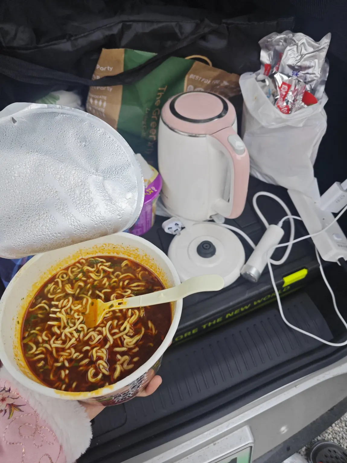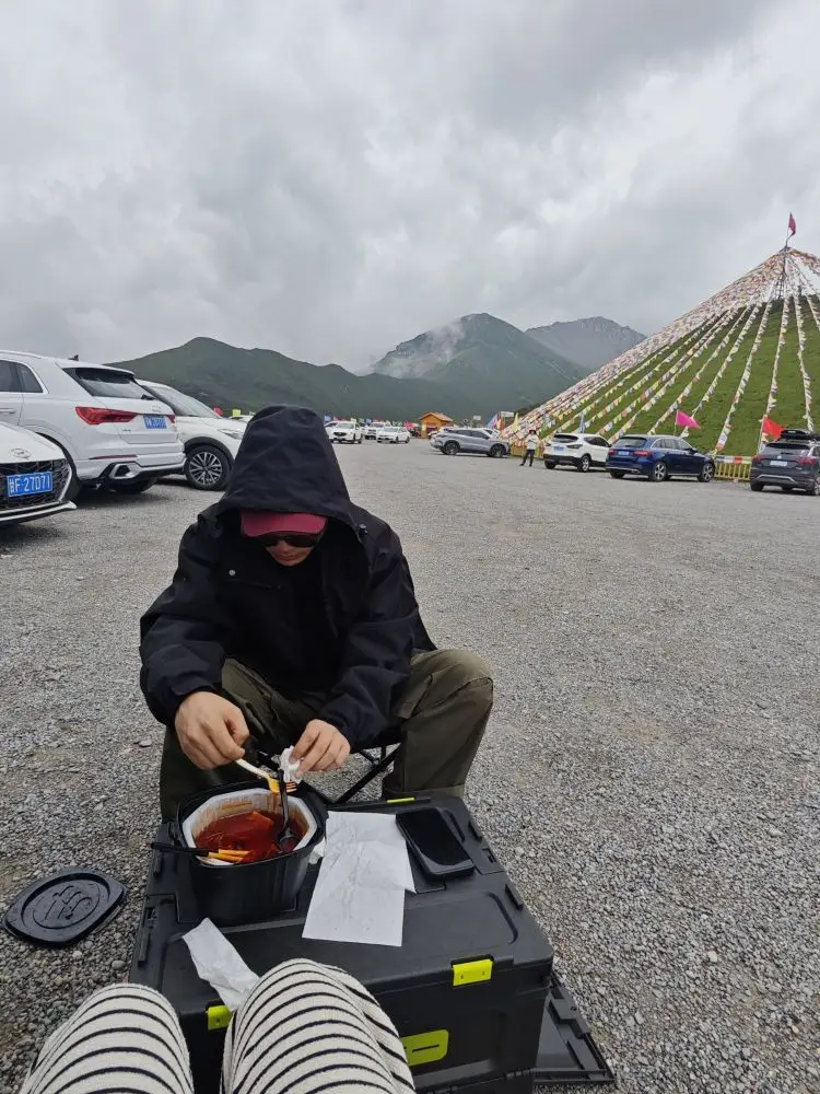 今天一早于北川河湿地公园停车场醒来,准备好东西,洗漱简单吃点早饭就前往了西宁红星美凯龙超级充电站补电(提一嘴,这个公园是免费的),补电期间在美凯龙商场解决了‘大事’(厕所很干净,但是卖家具的甲醛味严重超标)。接着下着小雨就去了达坂山观景台,在这里我们外放电解决了午饭。提一句这个观景台是一直需要上坡的最高海拔4000左右(有点类似于去四姑娘山会路过的一个观景台),因为是爬坡所以掉电特别快,能耗16左右,到达山顶满电就只有300公里了,but就像我对象说有上山必定有下山,莫要焦虑,大胆的向前走。