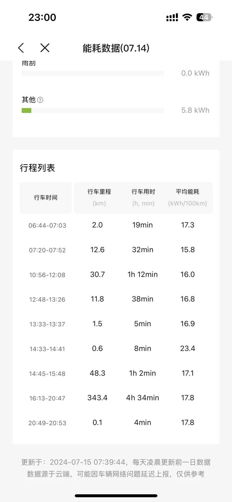 综合电耗:71.5kWh/343.5km≈0.208kWh/km
