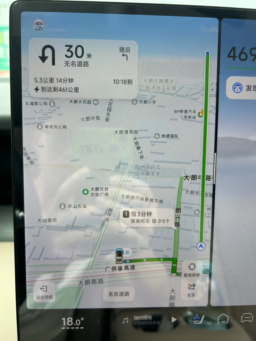 可两块屏幕都显示一样的画面有点浪费,所以我觉得中控屏的地图可以手动点击或者叫小p显示地图全览-固定全览,这样一来就可以随时查看实时路况和其他备选路线的路况,以便切换更高通行效率的路线