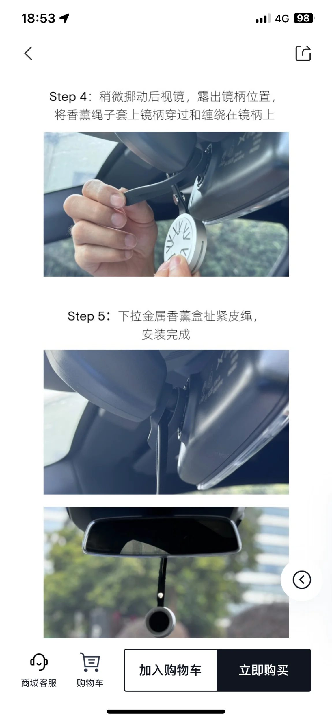 2.说明书介绍不完善。比如没有清晰告诉用户是怎么挂在后视镜上的。我一开始看了说明书发现没有介绍怎么挂上去,我还以为是硬扯过去的,后面发现不对劲,打开商城商品详情页才看到教程。这点应该在说明书上就介绍清楚,不需要用户打开手机查看。