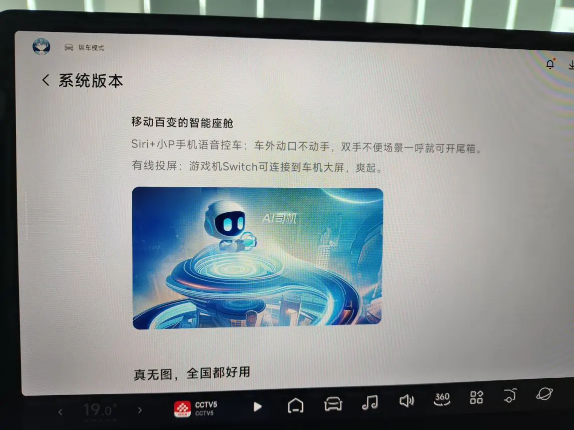 这台展车已经升级了最新的天玑5.2.0系统。经了解,天玑5.2.0主要针对诸多小细节进行优化和升级,具体涉及升级的内容在车机上可以查看。