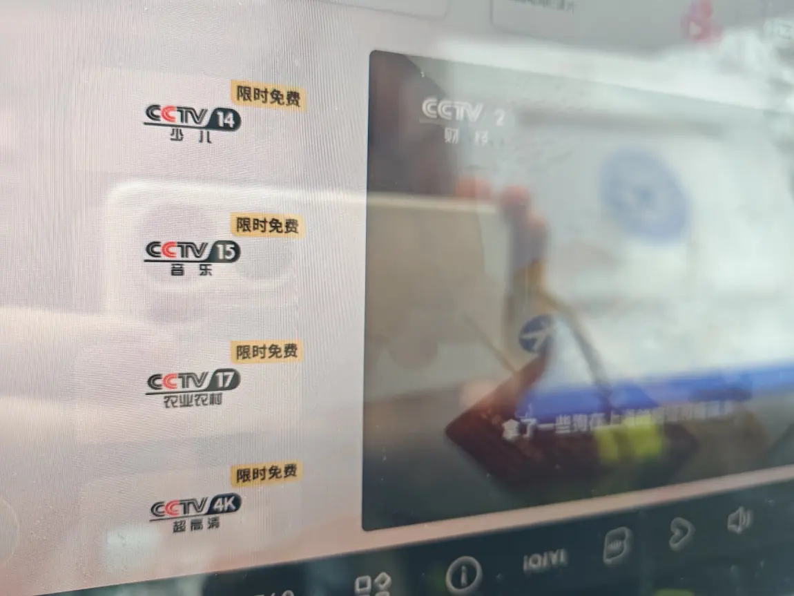 安装完毕,打开央视频应用,界面很简洁,主体界面是电视直播画面,基本央视的所有频道(有20多个)都可以看,包括CCTV5和CCTV5+以及4K频道,但是在频道图标右上角上写了“限时免费”,这就为未来的可能收费埋下伏笔。